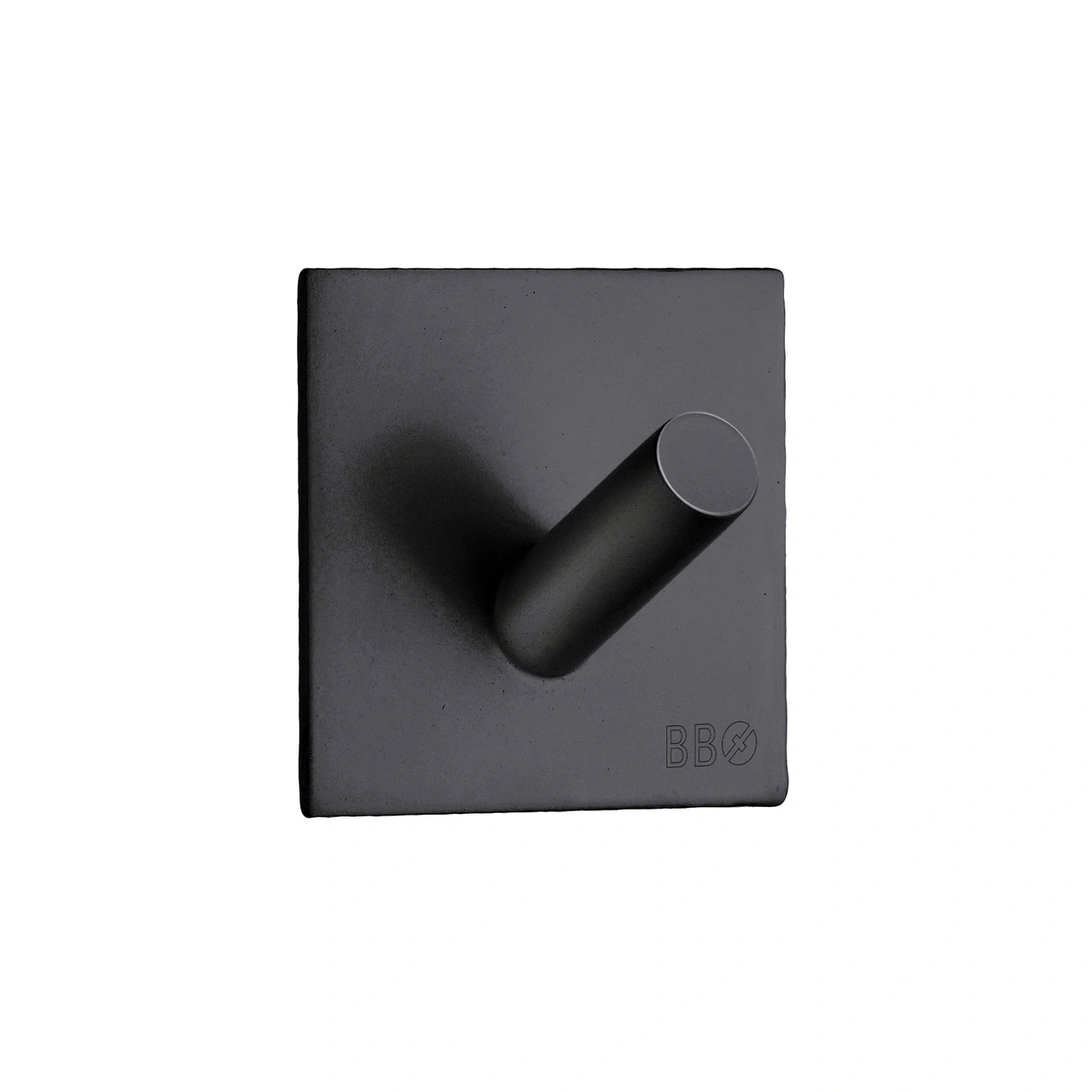 Stylish self-adhesive towel hook in matt black from Beslagsboden with a back plate that has a stylish design with straight edges. The single hook is made from stainless steel and has a matte black surface that gives your bathroom a sober look.