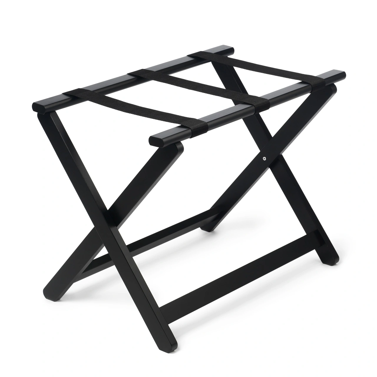Luggage rack/stand Edward, black. A stylish interior detail as well as practical. A must in the hotel room for guests. Perfect storage for bags and suitcases. Made of Swedish birch with durable black straps. Premium quality. Made in Sweden