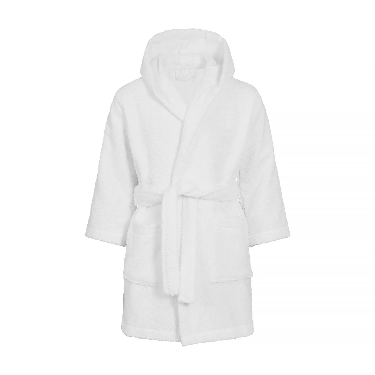 Bathrobe for kids in a wonderfully soft, plain, cotton terry. Cozy model with hood, two pockets and tie belt. EKO-TEX. Made in Portugal. Suitable for children in the age between 7-9 year.
