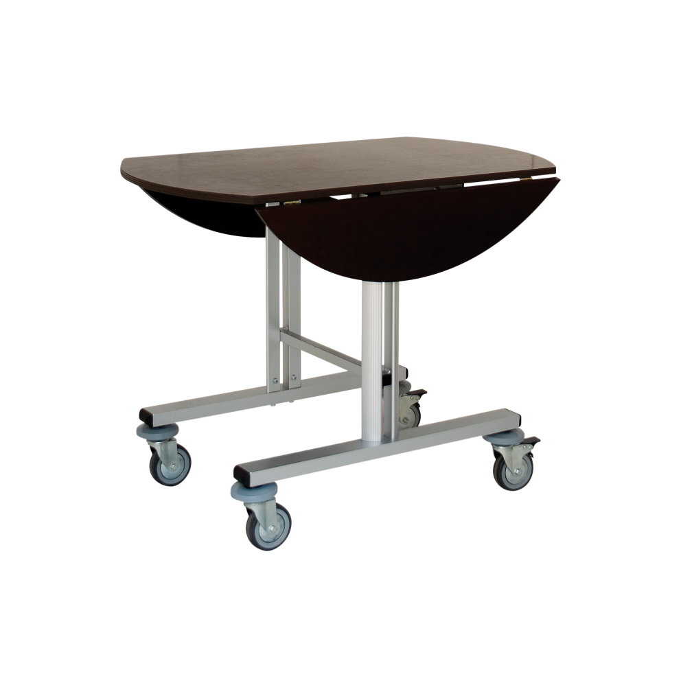 Roomservice bord för hotell i högsta kvalité av anodiserad aluminium, som håller en livslängd. Höj- och sänkbara sidor av trä. Bordet har 4 svängbara non-marking hjul. För mer detaljerad information klicka på fliken produktblad.